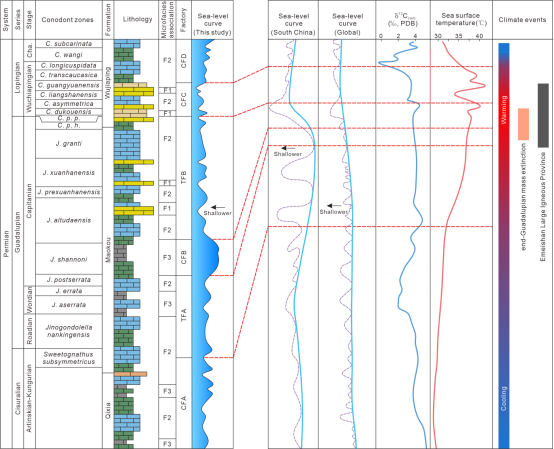 图2 沿渡河剖面碳酸盐工厂与二叠纪气候事件