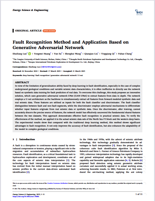 伟德国际1949官网副教授罗水亮在期刊《Energy Science & Engineering》上发表题为“Fault Recognition Method and Application Based on Generative Adversarial Network”的研究论文。伟德国际1949官网为论文第一署名单位,罗水亮副教授为第一通讯作者。