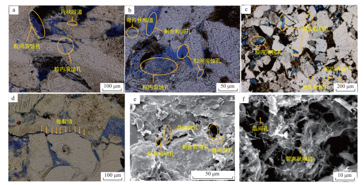 图2 砂岩储层孔隙类型及微观特征