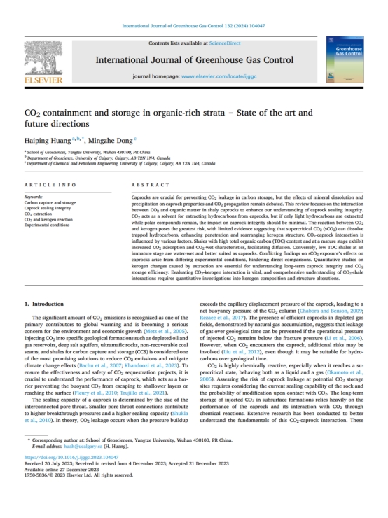 地科学院黄海平教授以第一作者身份在《International Journal of Greenhouse Gas Control》期刊发表题为“CO2 containment and storage in organic-rich strata ‒ State of the art and future directions”的研究论文,伟德国际1949官网为论文第一署名单位。