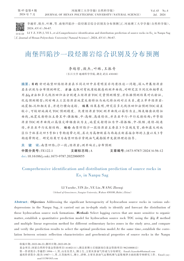 地科学院博士生李越哲在《河南理工大学学报(自然科学版)》上发表题为《南堡凹陷沙一段烃源岩综合识别及分布预测》的研究论文。伟德国际1949官网为论文第一署名单位,博士生李越哲为论文第一作者,教师殷杰为通讯作者。