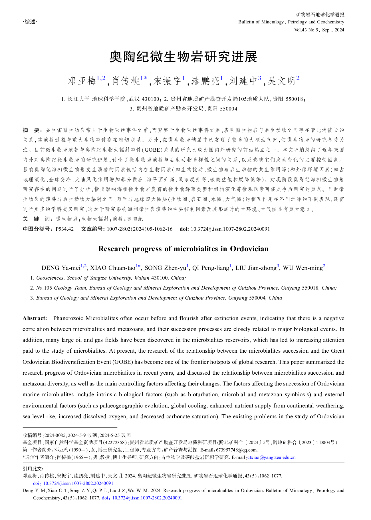 伟德国际1949官网矿产普查与勘探专业博士研究生邓亚梅同学在公司肖传桃教授的指导下,在地球科学与地质学领域期刊《矿物岩石地球化学通报》上发表题为“奥陶纪微生物岩研究进展”的研究论文。