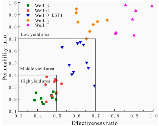 图1 基于裂缝指数比与渗透率指数比值的气井产能评价图版