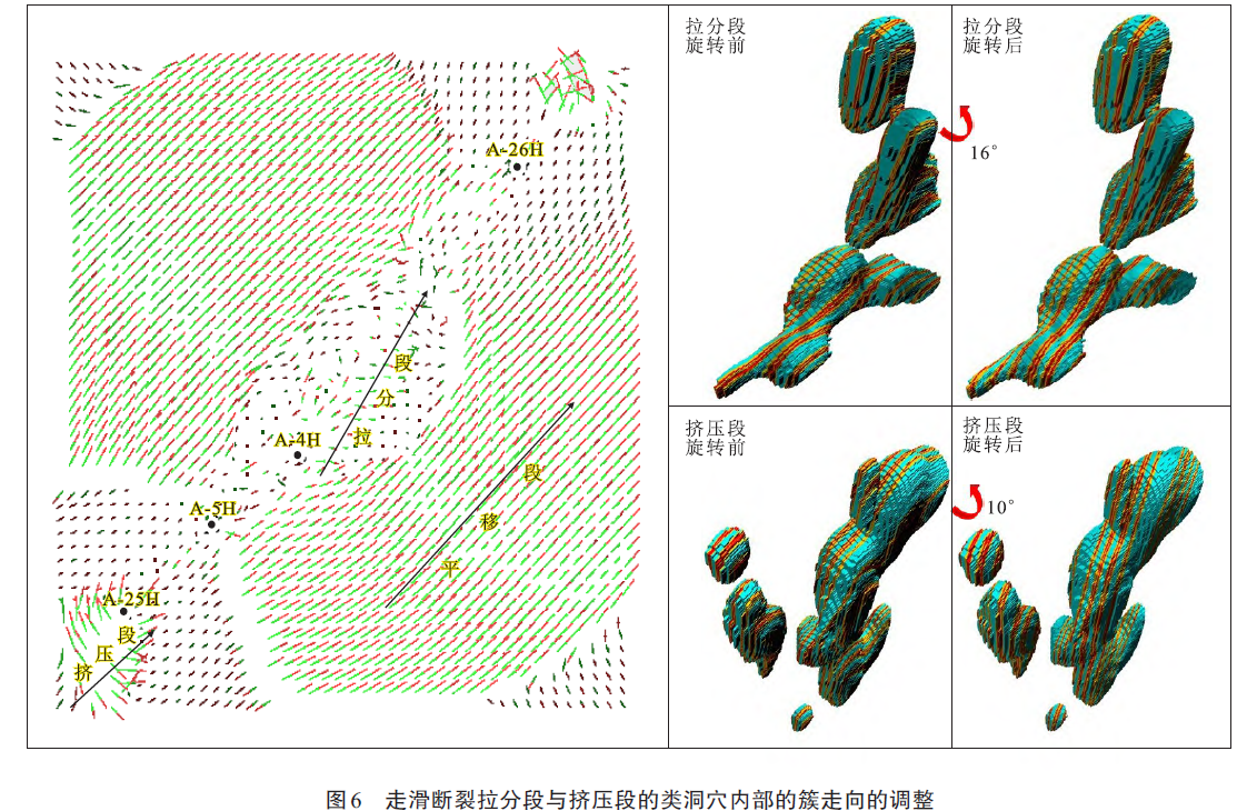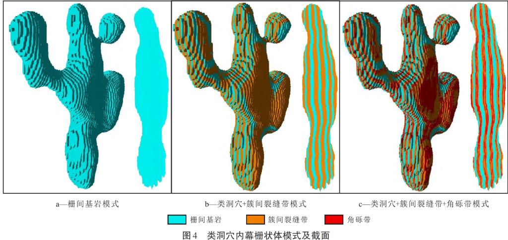 该研究综合研究区多种地质资料,建立了断控体储层的栅状结构模式。借助地震多属性描述断裂带、类洞穴的轮廓体,根据测井解释信息统计类洞穴内部角砾带、裂缝带的规模数据,将定量规模数据作为输入参数,编程实现一种基于目标的断控体栅状结构表征方法。利用层次表征思路,在类洞穴轮廓内部逐级刻画裂缝带、角砾带,并根据应力角度对裂缝带、角砾带进行角度旋转。研究成果为后续断控体油气藏动态开发调整提供了技术支撑。