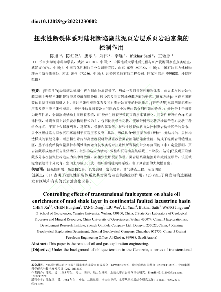 伟德国际1949官网陈旭副教授以第一作者身份在《中国地质》权威期刊上发表题为“扭张性断裂体系对陆相断陷湖盆泥页岩层系页岩油富集的控制作用”的研究论文,该项研究得到了湖北省自然科学基金的资助。