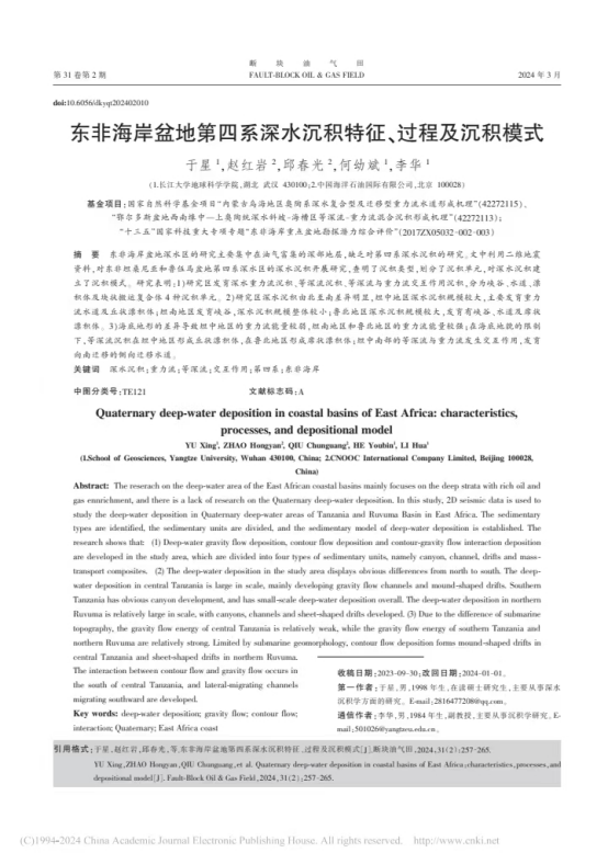 地科学院硕士生于星在《断块油气田》发表题为“东非海岸盆地第四系深水沉积特征、过程及沉积模式”的研究论文。伟德国际1949官网为论文第一署名单位,硕士生于星为论文第一作者,教师李华为通讯作者。