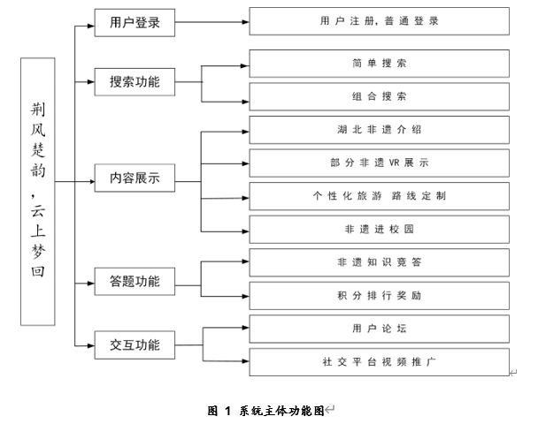 该平台设计功能包括用户功能(登陆注册)、搜索、湖北非遗内容展示:展现形式包含文字、图片、视频、以及部分非遗项目的VR展示。旅游路线规划:结合员工专业知识,使用WebGIS技术,将地图信息发布到网页上。用户可以根据兴趣点筛选旅游景区、指定旅游路线。趣味答题:为了让更多人了解并传承非遗文化,用户可以通过参与趣味答题学习到相关知识,并与网友PK。最后,该平台调用了高德API,可以根据用户选择的路线进行实时的导航。