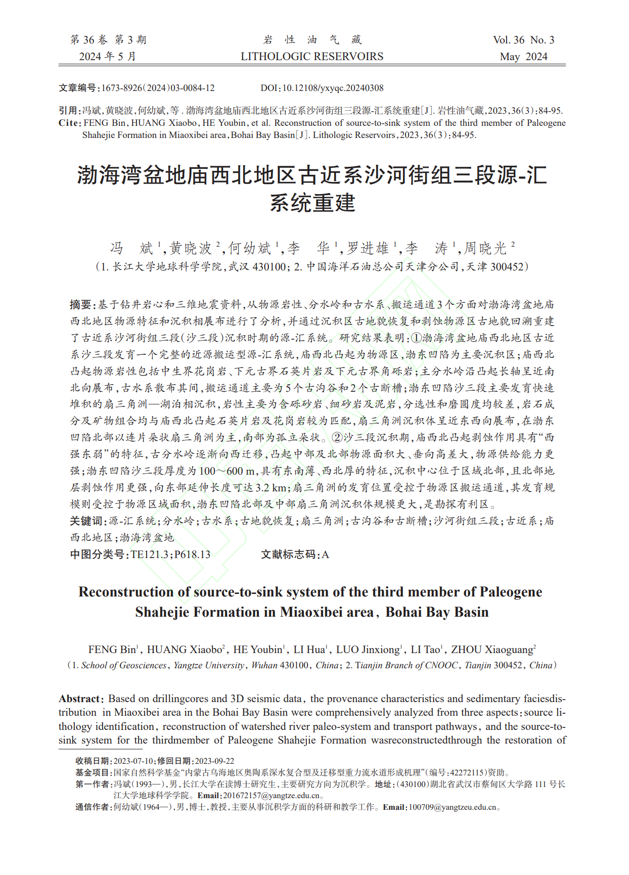 地科学院何幼斌教授团队长期从事沉积储层相关研究,团队成员冯斌在中文核心期刊《岩性油气藏》上发表题为“渤海湾盆地庙西北地区古近系沙河街组三段源-汇系统重建”的科研论文。伟德国际1949官网为论文第一署名单位,博士研究生冯斌为论文第一作者,其导师何幼斌教授为通讯作者。