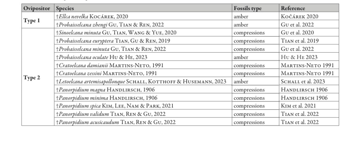 表2 短脉螽总科Elcanoidea中保存的产卵器