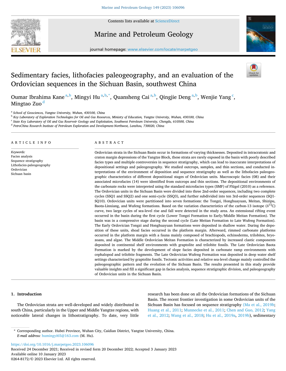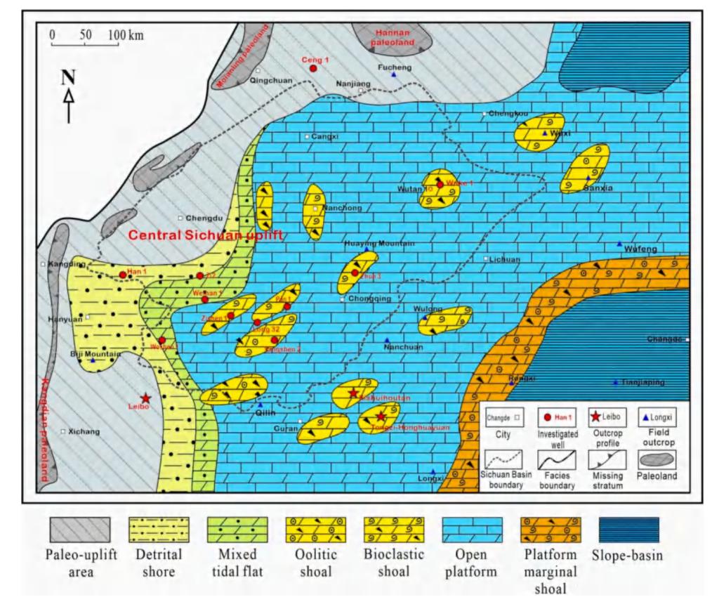 地科学院胡明毅教授团队在石油地质领域主流期刊《Marine and Petroleum Geology》发表了题为“Sedimentary facies, lithofacies paleogeography, and an evaluation of theOrdovician sequences in the Sichuan Basin, southwest China”的研究论文。论文基于露头、岩心、薄片观察,结合碳氧同位素等测试分析对中国西南部地区四川盆地奥陶系层序地层、沉积体系和岩相古地理开展了研究,将四川盆地奥陶系划分为3个二级层序、10个三级层序(图1),系统编制了该区奥陶系岩相古地理图(图1),建立了该区奥陶系沉积演化模式,认为该区早奥陶世发育镶边台地、晚奥陶世发育缓坡台地沉积。