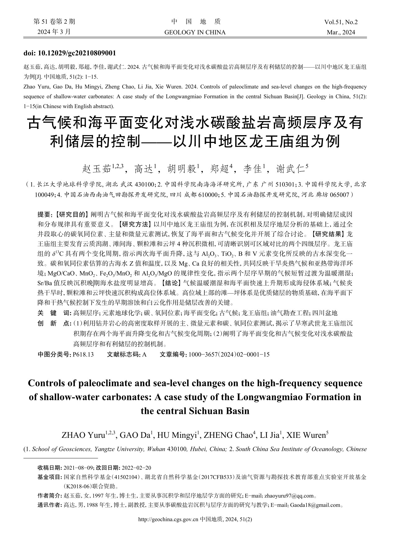 公司硕士生赵玉茹在中文核心期刊《中国地质》上发表了题为“古气候和海平面变化对浅水碳酸盐岩高频层序及有利储层的控制——以川中地区龙王庙组为例”的研究论文。伟德国际1949官网为论文第一署名单位,研究生赵玉茹为论文第一作者,高达教授为论文通讯作者。论文得到了国家自然科学基金与教育部重点实验室开放基金的联合资助。