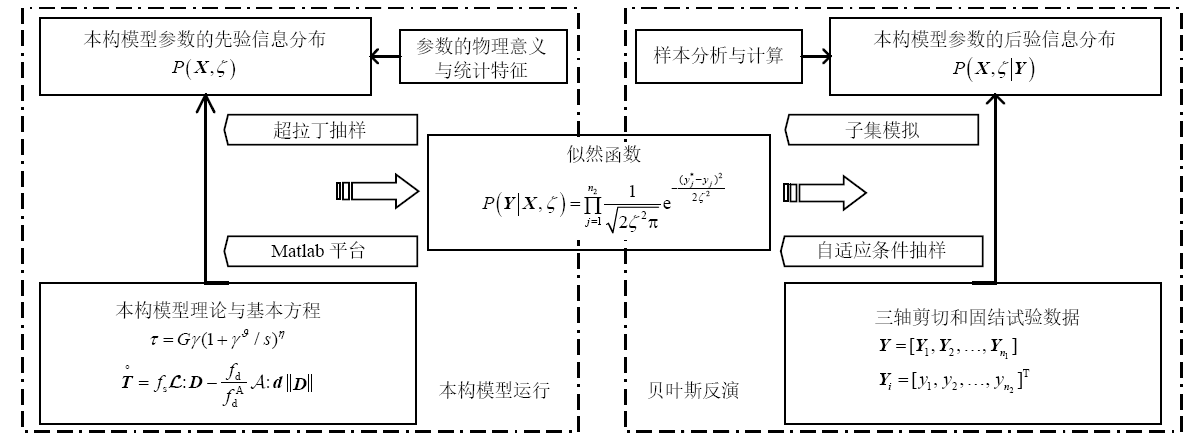 模型参数评估是本构模型发展的重要研究内容。为了考虑本构模型参数评估过程中存在的误差,采用基于结构可靠度、子集模拟和自适应条件抽样方法的贝叶斯框架,提出一种基于试验数据反演的本构模型参数不确定性评估方法。分别以表征岩土体剪应力−剪应变的节理剪切本构模型和描述土体非线性应变增量−应力增量的亚塑性黏土本构模型为例,研究了本构模型参数、土体偏应力−应变和孔隙比−压力曲线的不确定性表征结果,并分析了模型参数对试验结果的敏感性。结果表明该方法可以评估验数据驱动下本构模型参数的拟合不确定性。对于应力−应变曲线的表征。研究结果有助于加深对这两种本构模型的理解以及提高本构模型预测的可靠性。