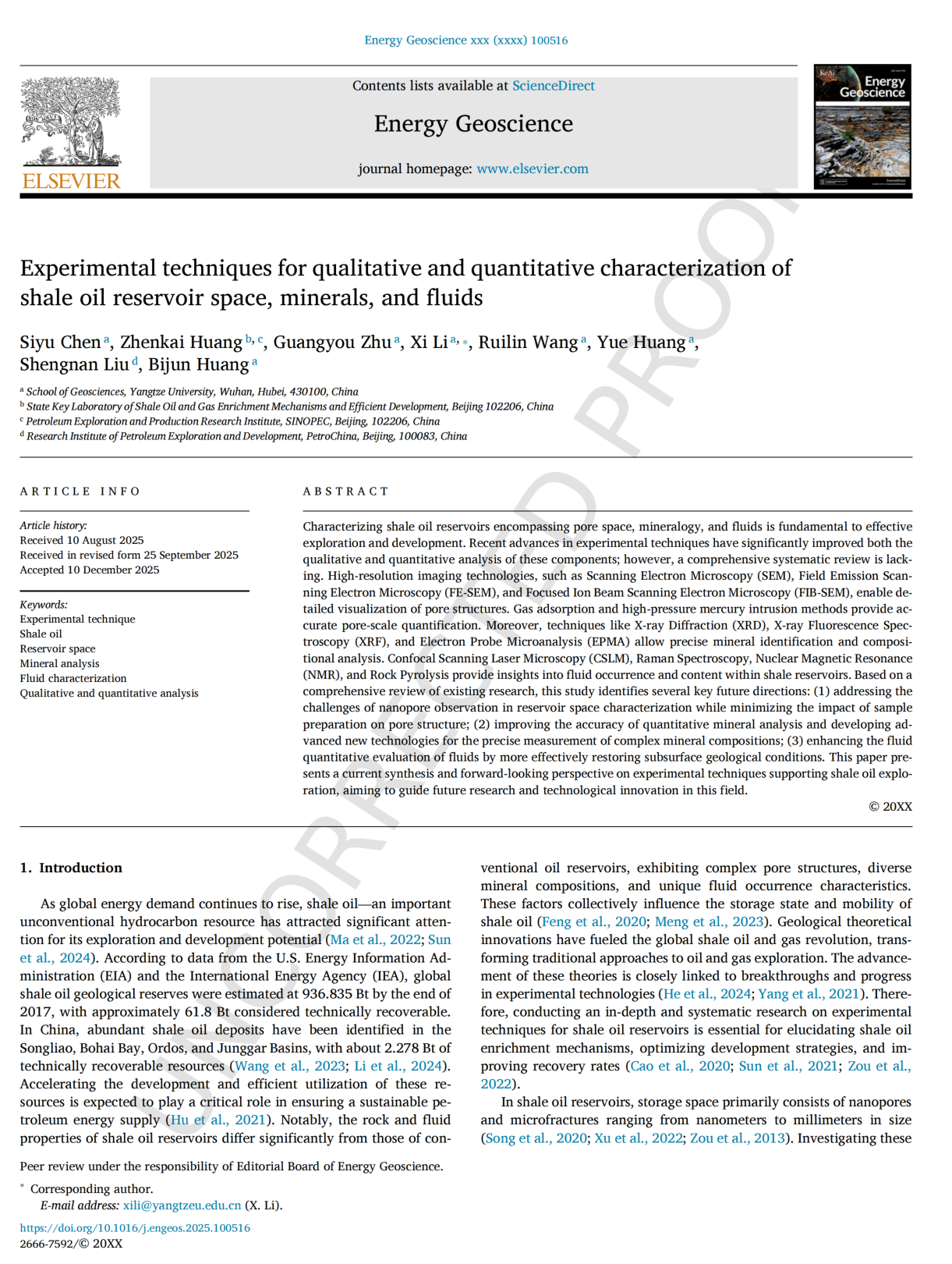 近日,地科学院2025级地质资源与地质工程专业硕士研究生陈思钰以第一作者身份在《Energy Geoscience》上发表了题为“Experimental techniques for qualitative and quantitative characterization of shale oil reservoir space, minerals, and fluids”的研究论文。伟德国际1949官网为第一完成单位和通讯作者单位。