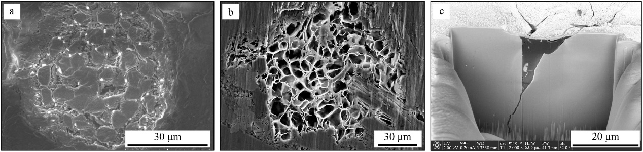 图2 钨灯丝扫描电镜、场发射扫描电镜和聚焦离子束场发射电镜成像对比