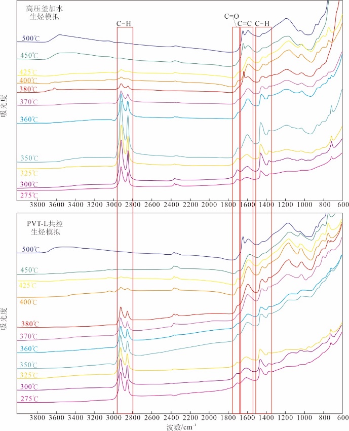 图3 不同热模拟方式下干酪根的FT-IR谱图(余晓露等,2017)