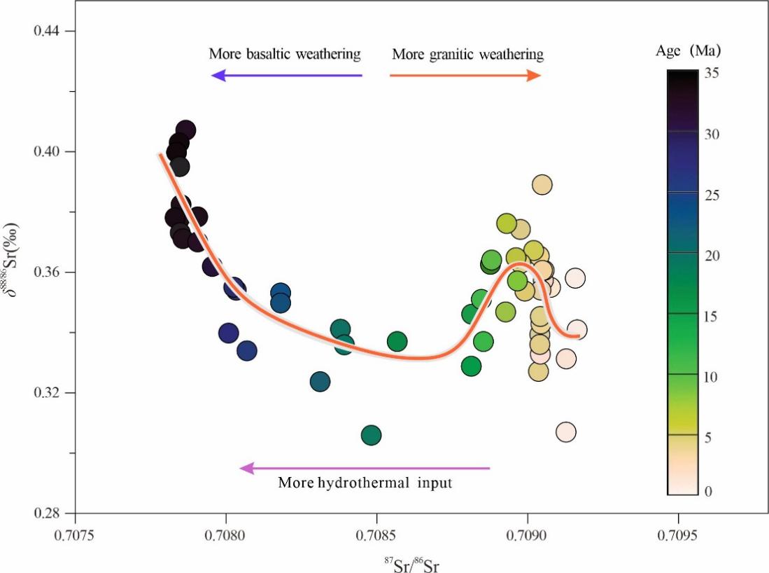 图4 过去3500万年锶同位素体系的演化