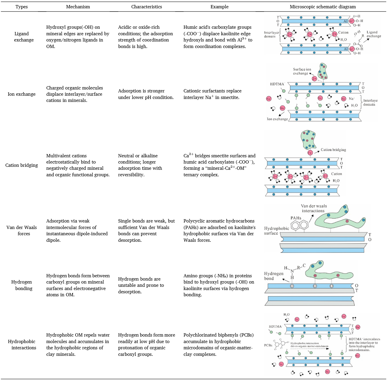 图3 矿物吸附机制及示意图(据 Keil and Mayer, 2014; Kögel-Knabner and Amelung, 2014修改)