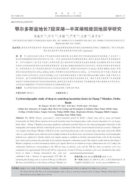 伟德国际1949官网2023级地质学专业硕士生徐鑫彦以第一作者身份在中文核心期刊《断块油气田》上发表题为《鄂尔多斯盆地长7段深湖—半深湖相旋回地层学研究》的论文(图1),伟德国际1949官网为论文第一署名单位。本研究成果依托南方复杂页岩油气地质与开发湖北省重点实验室完成。得到国家自然科学基金项目(42402132)(42172179)的资助。相关研究成果发表于该期刊第1期。