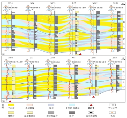 图1 鄂尔多斯盆地合水南地区长71沉积相连井剖面图
