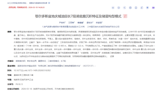 伟德国际1949官网硕士研究生王高寒在《伟德国际1949官网学报(自然科学版)》发表了题为“鄂尔多斯盆地庆城油田长7段湖底扇沉积特征及储层构型模式 ”的研究论文。