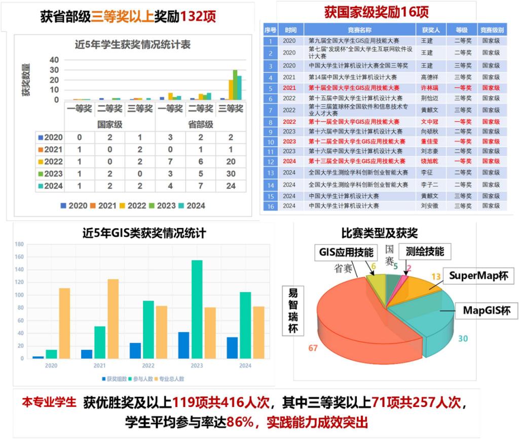 打造了“竞赛-教学-科研”协同促学创新体系。通过全国GIS技能大赛、创新创业大赛、老员工创新创业项目等平台,构建多层次学科竞赛组织体系;结合导师组助学促学创新机制,本科生加入导师课题组开展科研实践,实现“竞赛-教学-科研”良性循环。近5年员工参与学科竞赛获省级以上奖项130余项,2021-2024期间公司员工连续四年荣获“全国老员工GIS应用技能竞赛一等奖”;张跃、黄麒文等多名本科生发表SCI一区Top论文。