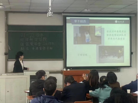 国家奖学金答辩在主持人亓海琳的宣布下拉开了帷幕。参与国家奖学金答辩的12位学子依次上台展现自己的风采,从学业成绩、科研创新、社会实践、志愿服务、员工工作、学年内所获荣誉证书等方面展开答辩。资工(测录)21901班的王林同学第一个上台,展示了过去三年的老员工活丰富多彩的的学习和成长经历,其优异的成绩、丰硕的科研成果以及充实的学干与志愿经历,令人赞叹。其他竞选者也丝毫不落下风,各放异彩,他们卓越的学术成果与丰富的实践履历诠释了何为超越、何为卓越、何为榜样的力量。