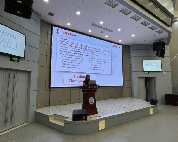 (通讯员 刘家玉)为提升公司2022级本科生英语四级听力水平,科学合理备考听力,掌握听力考试技巧,公司于3月20日晚18:30,在伟德国际1949官网武汉校区学术报告厅举行了英语四级听力技巧专题讲座,讲座由新文道英语名师段依莎主讲,学工办姚佳、黄瑱以及357名本科生全员参会。