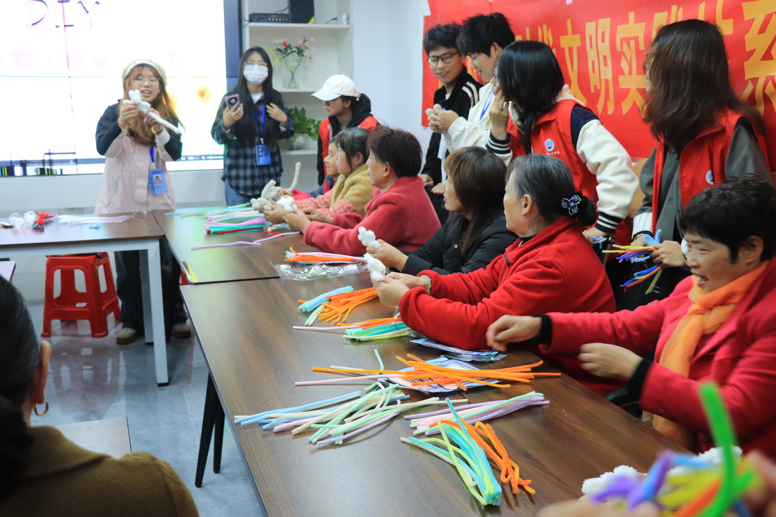 活动中,社区爷爷奶奶们在志愿者的引导下,发挥无限创意,将一根根色彩斑斓的扭扭棒扭转成形态各异的小动物、花朵和卡通人物。现场爷爷奶奶们的笑声与欢呼声此起彼伏,整个活动现场充满了欢乐与温馨,欢乐的氛围似乎让时间倒转,爷爷奶奶们都说仿佛回到了童年。