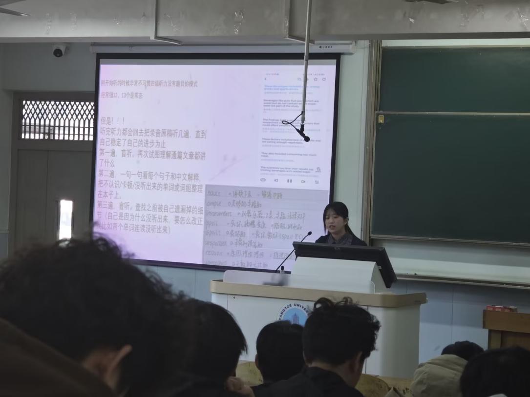 (通讯员 周文豪)3月20日下午,公司于东校区13教开展“地科青年说”第二期:英语四级备考经验交流会。2024级和2023级四级高分优秀员工代表雷航、韩艾希、卜文杰、王梓璇作为主讲嘉宾,为24级备战四级的同学做经验传承与备考指导,学工办毕浩浩和赵娥老师主持会议,助力考生科学备战四级考试。 资工油光22201雷航以“逆风翻盘”为题,讲述自己如何在完全没有听力基础的情况下,通过反复练习真题录音,熟悉语速和口音,最终在四级考试中取得高分。资工(卓越)22301班的韩艾希分享自己在备考时会根据自身实际水平设定合理的目标分数,并在达成目标时给自己一个小奖励,以激励自己不断努力。资工12401班的卜文杰提醒同学们一定要加强单词背诵,自己经常使用“百词斩”,以图片、视频讲解单词,生动有趣,适合碎片化学习。地信12401班的王梓璇说:“改变拖延的习惯,我们的备战就成功了一半。”几位同学分享了自己的备考经验和学习方法。他们从词汇积累、听力训练、阅读理解、写作技巧等方面进行了详细的介绍,并建议同学们合理安排时间,制定科学的学习计划,多做真题,注重总结错题,不断提高自己的英语综合能力。 随后,两位老师强调了英语四级考试对员工个人发展和学院人才培养的重要性。他们指出,英语作为国际通用语言,在全球化背景下的重要性日益凸显,熟练掌握英语不仅有助于同学们拓宽国际视野,还能为未来的考研、就业等打下坚实基础。同时,他们也肯定了同学们在英语学习方面付出的努力,并鼓励大家在接下来的备考过程中坚定信心,持之以恒。 公司已建立“四级加油站”,每天为同学们分享一篇四级阅读文章。本次会议同步启动"四级帮扶计划",50名高分学子将对接备战四级考生开展四级专项辅导。此次四级动员大会的召开,极大地激发了同学们备考四级的热情和信心。 (编辑 赵娥 审核 冯舒)