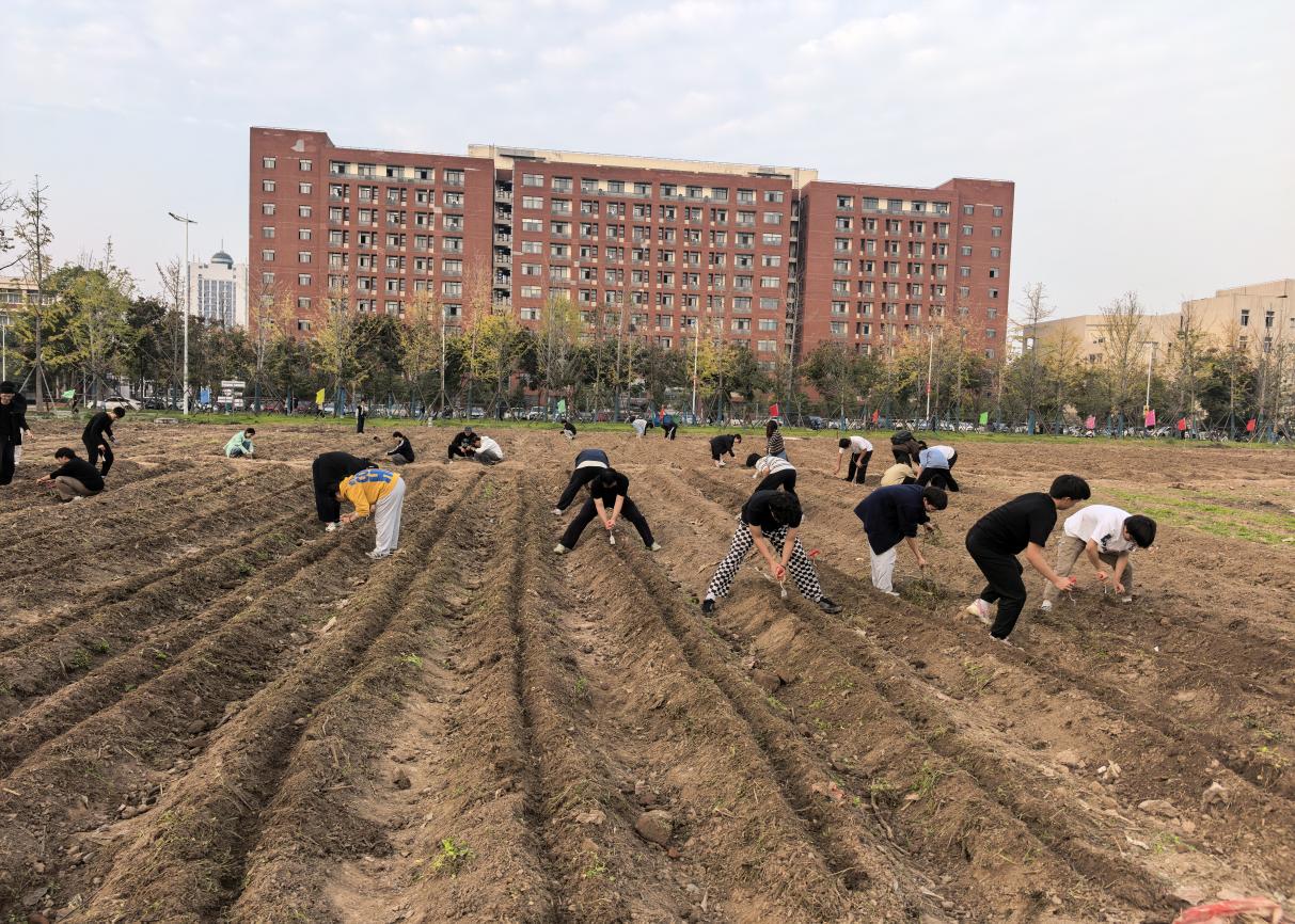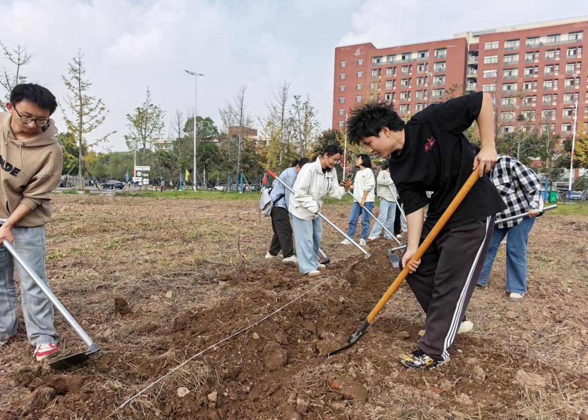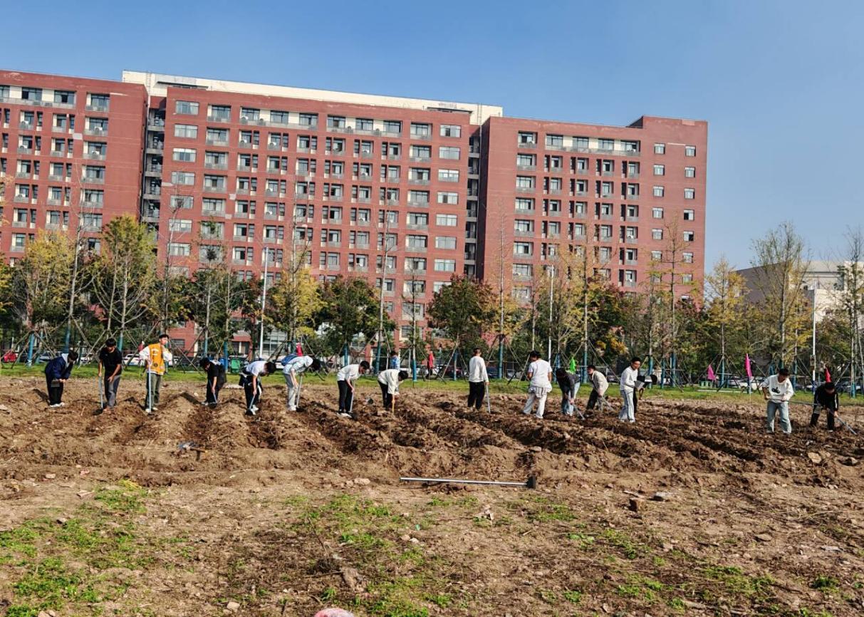 11月4日至5日,学院分批次组织员工在“责任田”开展劳动实践。同学们在辅导员黄瑱的现场带领下,学习了起垄、掘沟等农事技巧,完成了土地划分和初步开垦,做到“垄要直,土要松”,同学们接力完成了垄沟修整、石块清理和播种等工作,使责任田初具规模。