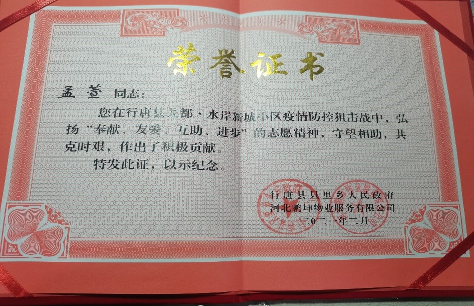“战‘役’关头,勇者胜”,孟萱如是说,“正是有一批又一批勇敢的人,在危险关头冲在前面,我们才能一次又一次取得疫情攻坚战的胜利,我很骄傲也很自豪成为这样的人。”