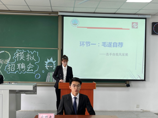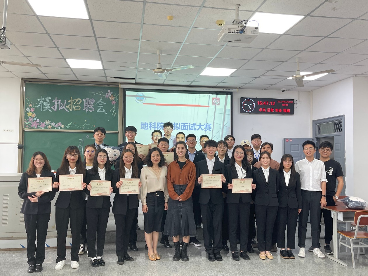 最后由地科公司党委副书记任倩老师总结:“模拟面试大赛给大家提供了一个良好、专业的锻炼平台,希望同学们能学以致用,将就业指导课上的理论知识付诸实践,并在参赛过程中学习、总结,在未来真正的应聘场上可以脱颖而出,创造美好的未来!”