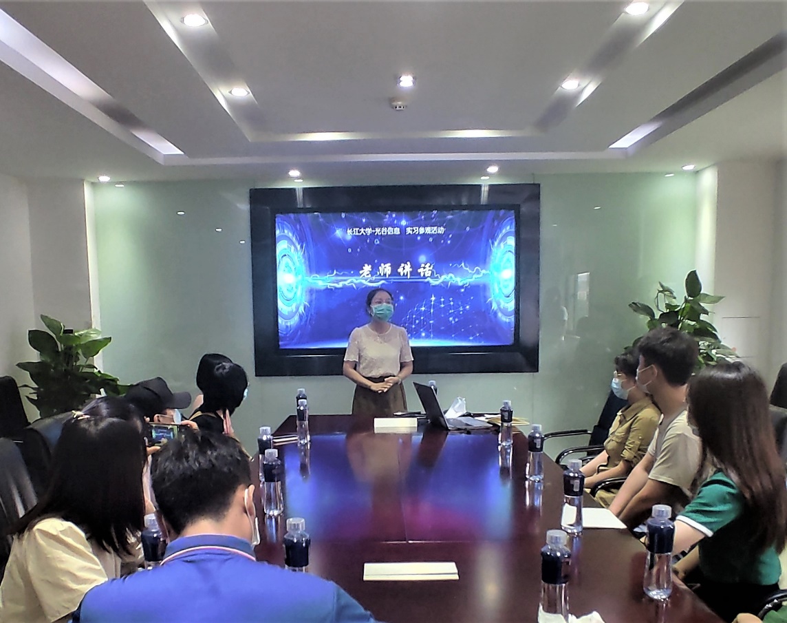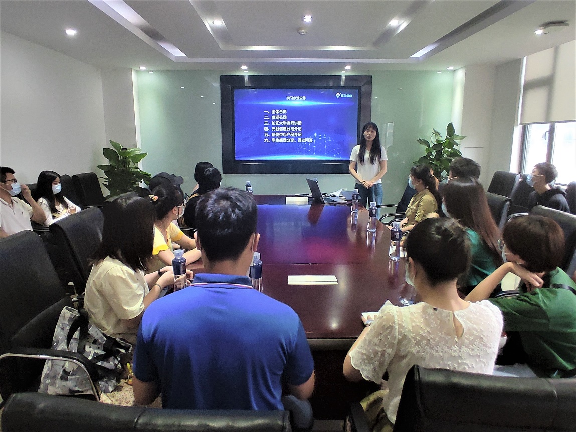 参观完整洁的办公环境,同学们一起来到了四楼会议室。郭霖老师首先对光谷信息提供的机会表示感谢,并为公司良好的企业氛围和办公环境点赞;她希望同学们借助今天这个机会,带着专业的疑问和对未来规划的思考用心地来进行交流。接着,她提出了同学们要实现三个转变:“第一是要实现从学校学习的知识到和实践相结合的转变,要能够理论联系实际;第二是要实现从员工到职业人的转变,尽快改变观念去适应工作;第三是要实现从一个普通公民到社会人的转变,承担起自己的社会责任。”她寄语:“同学们要把自己的命运和国家联系到一起,要立大志、长志,争取为学校、为行业、为祖国增光添彩。”