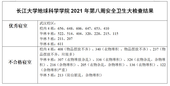 此次检查工作让全院同学对寝室的安全卫生管理规章有了进一步的了解,增强了员工的卫生与安全意识,督促了员工共创优美干净舒适温馨的寝室环境,进一步推动了地科学院的卫生与安全管理工作。