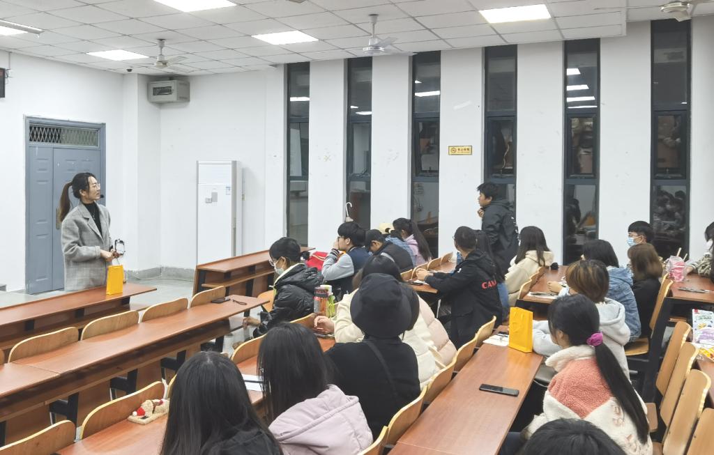 讲座伊始,王老师通过现场抢答与同学们互动,在抢答中,大家知道了“心理中心生命热线号码”、“心理咨询不等于思想教育”等常识。随后王老师讲解了老员工面对的五类主要心理问题及表现,并用案例告诉干部们,在态度上要积极主动的“撩”遍全班,在行动上要善于观察、学会倾听、怀着同理心。她还提醒大家在关注同学们身心健康的同时,要避免走入“共情过度”的误区。学会善用学校资源,对于状态不佳,可能有“抑郁症”等心理疾病的同学,与其自己保密“硬撑”,不如及时推荐到心理中心,方可真正让同学获得专业帮助。