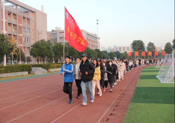为提高同学的综合素养,升旗仪式后举行健康跑活动,同学们在“随风奔跑自由是方向,追逐雷和闪电的力量......”的歌声中,全院员工如一条长龙在操场上奔跑。队伍最前方鲜红的院旗代表着学子们昂扬的心。