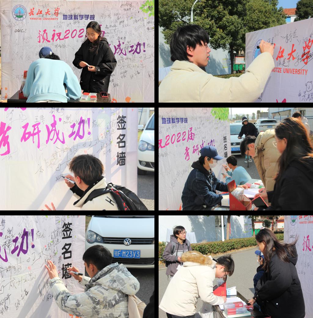 12月17日,学院在华林公寓9栋楼下设立考研礼包领取点,并精心布置了一面“考研签名墙”。现场,同学们收到礼物后,激动地在签名墙上签下自己的名字。“签名墙”布置上去不到一天的时间,就被众多鼓励、温暖的祝福语覆盖上,“一起上岸”“一战成硕”等等。在场同学表示,这上面的祝福有对自己的,当然也有对一同坚持奋斗的“战友们”的,大家加油!
