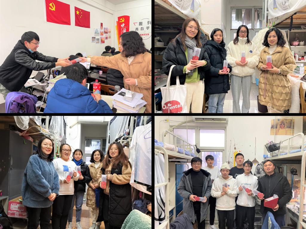 12月16日,公司党委副书记任倩,辅导员王红桥、郭霖、潘志远、张严等通过走访学习活动室、员工寝室等方式,了解员工学习、生活情况,为考研学子加油助威并送上考研礼包,并表达慰问、鼓励和企盼之情。同时对考风考纪等进行强调,进一步强化学风建设。