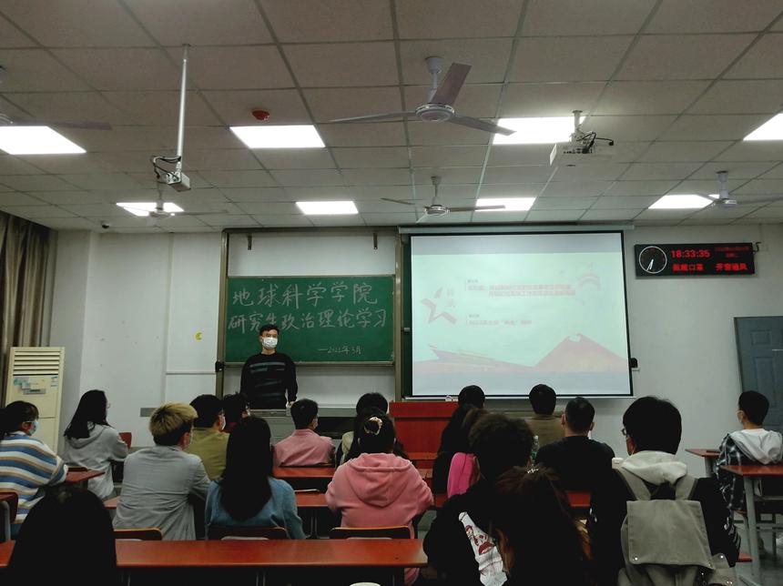 (通讯员 古楠玲)为提升公司研究生政治理论素养,坚定不移走中国特色社会主义法治道路,从3月15日至3月31日,公司以班为单位,开展了线上、线下相结合的政治理论学习活动,并于3月29日晚,在B-207教室集中进行了线下政治理论学习活动。此次学习由地科学院学工办兼职辅导员梁博主讲,研究生会主席陈剑峰主持,部分研究生参加。