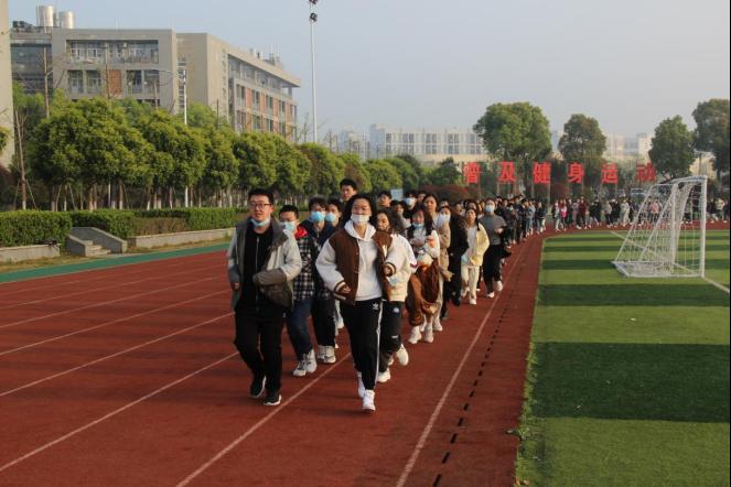 为提高同学们的身体素质,公司在最后组织健身跑活动,同学们积极参与,随风奔跑,青春洋溢。
