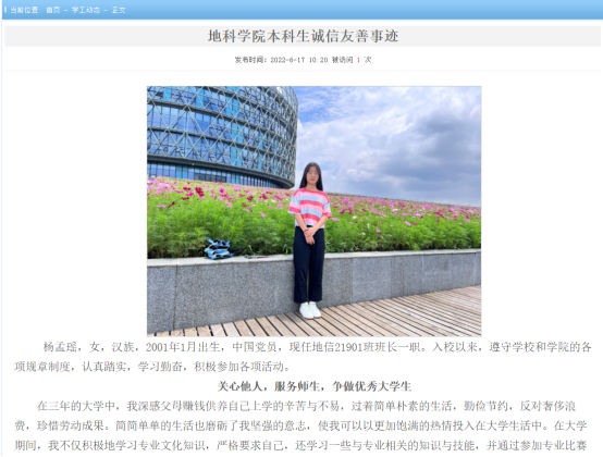 为进一步激发争做诚信老员工的自豪感和使命感,公司积极开展“诚实做人、诚信治学、诚信就业”的先进典型评选工作,在各年级积极组织优秀员工进行申报,选拔出杨孟瑶等4名同学为代表的诚信友善典型,通过学院官网进行广泛宣传, 引导广老员工理性消费、珍视诚信、勤奋有为,营造人人讲诚信、崇尚诚信、友善关爱的育人氛围。