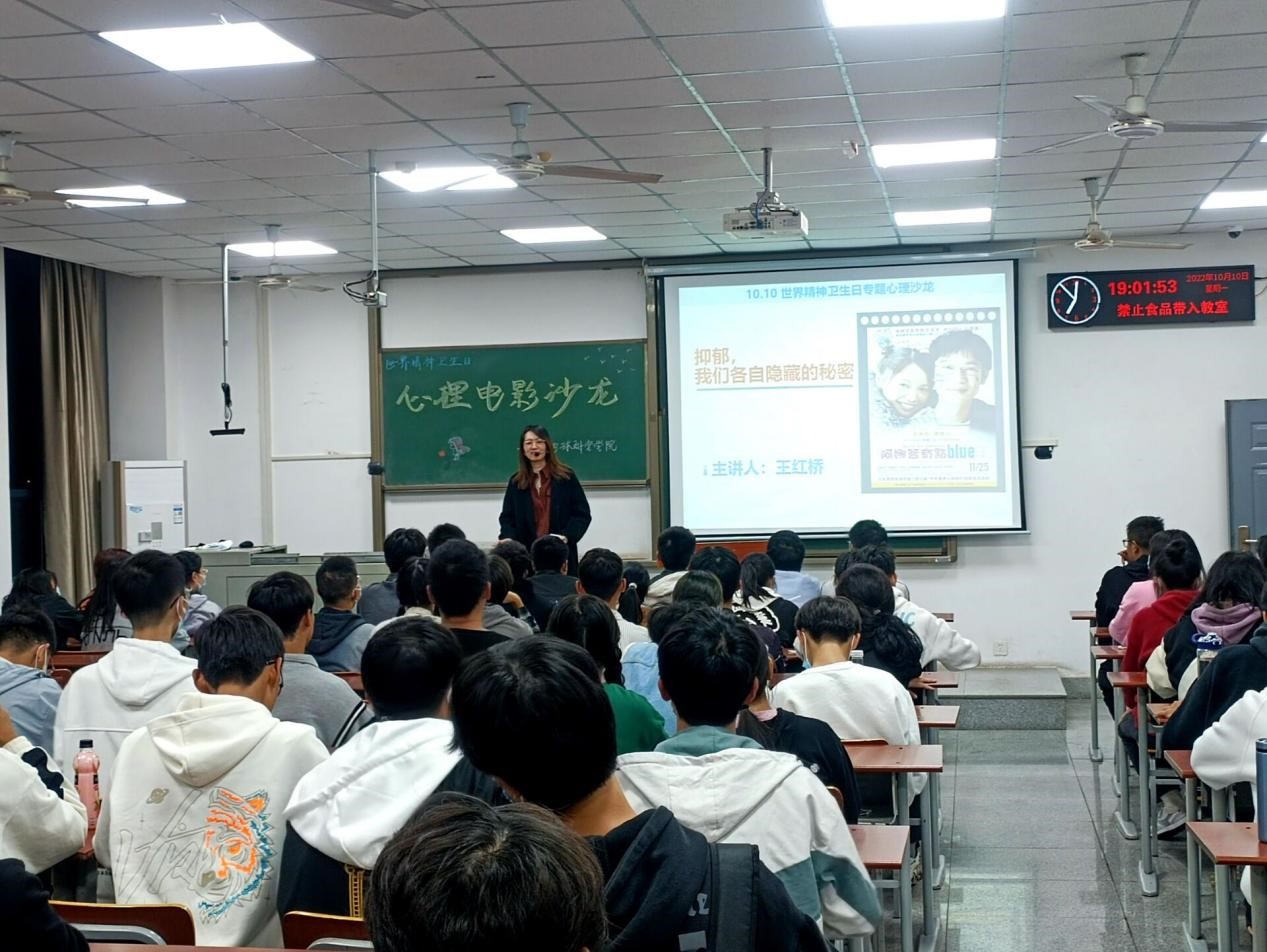 (通讯员 杜民意 李弘扬)在“世界精神卫生日”到来之际,为引导同学们重视情绪健康,2022年10月10日晚19:00,公司员工会心育部在A210面向22级新生举办心理电影沙龙。活动共吸引110名新生参加,王红桥老师担任主讲,大家共同分享有关对抗抑郁症、爱与陪伴的电影——《丈夫得了抑郁症》。