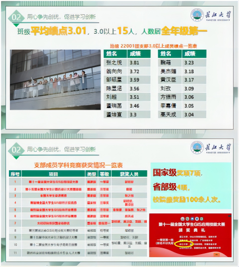 建设优良的学风,营造良好学习环境,是班级建设的重中之重。自开学以来来,同学们互帮互助,勤于开动脑筋,建立了“零挂科辅助集团”,致力于为同学们答疑解惑、分享解题思路。同学们善于向老师提问,认真完成作业。整个班级学习风气浓厚,生机勃勃,与老师积极配合,课堂气氛活跃获得老师们的一致好评。大二学年,我班同学共有两人获得“伟德国际1949官网一等奖学金”,两人获得“李建华一等奖学金”,两人获得“国家励志奖学金”,一人被评为“三好员工”,一人被评为“三好员工标兵”,一人被评为“十佳老员工”,共两人被评为“优秀员工干部”,多名同学获得“伟德国际1949官网单项奖学金”,两人担任校级组织重要负责人的角色。全班平均绩点3.01,四级通过率100%,六级通过率60%。在各类考试中,严肃考风考纪,未出现一例违纪现象。全班最高绩点为4.63,专业前十名本班有三位同学,多名同学通过计算机二级等专业认证。在辅导员和班主任的管理下,严谨的学风铸就了不怕苦不怕累的拼搏精神,良好的学习氛围也使班集体在全校脱颖而出。我班同学获得“第十一届全国老员工GIS应用技能大赛”全国一等奖;“第十五届全国老员工计算机设计大赛”全国三等奖一项、省部级一等奖一项;“全国老员工英语竞赛”全国三等奖;“易智瑞全国老员工GIS软件开发竞赛”全国三等奖两项;“第三届湖北省GIS应用技能大赛”特等奖;“第十二届全国老员工电子商务三创赛”湖北省一等奖;“蓝桥杯全国软件和信息技术专业人才大赛”省级三等奖。目前共有超半数的同学参加大创项目,其中国家级项目一项,省级项目两项,共发表一篇核心期刊、一项软件著作权,其中国家级大创项目“麦朴志愿”已正式投入使用。