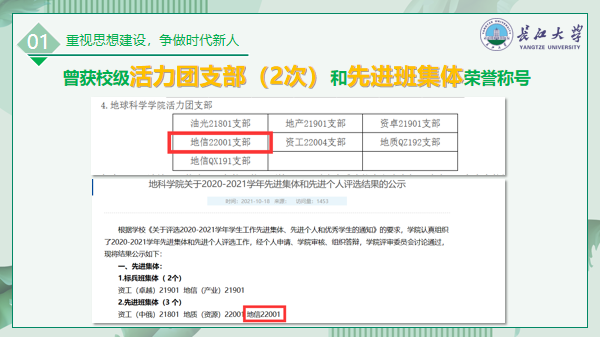 乘着和煦的秋风,2020年9月我们相聚在伟德国际1949官网地信22001班这个温暖的大家庭。这是个团结友爱的集体,我们在这里欢笑、合作、携手共进。这是个朝气蓬勃、有着强大凝聚力的集体,我们在这只属于我们的大学岁月里挥洒青春!这是个投身社会主义建设的集体,我们在这里与人为善、帮扶他人。两年多以来,在学院领导、辅导员以及众多老师的关怀和指导下,全班同学以“团结、奋进、感恩”的班级精神,团结进取,齐头奋进,在思想,学习,生活,文体各方面都取得了优异的成绩。