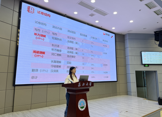 (通讯员 刘家玉)为提升公司22级员工英语水平,掌握英语四级阅读板块解题技巧,助力员工冲刺英语四级考试。4月10日晚18:30,公司于伟德国际1949官网武汉校区学术报告厅举行英语四级阅读技巧专题讲座。本次讲座由新文道英语名师段依莎主讲,学工办姚佳老师、黄瑱老师出席,2022级357名本科生全员参与。