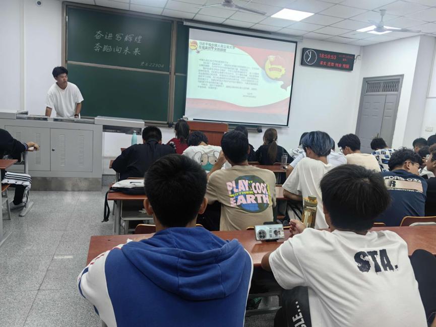 接着,邱干其对同学们进行了以“坚强核心”为主题的青年教育,让同学们明白了青年教育的重要性,使同学们认识到自己作为当代新青年的责任和义务。随后,邱干其为同学们讲解了习近平总书记给东北大学全体师生回信精神和给中国人民公安大学在读英烈子女的回信精神,同学们用心用情学习回信精神,弘扬了信中铸魂育人,强国兴邦的重要精神和对英烈的崇高赞扬精神,加强共青团与青年人之间的联系,激发同学们心系祖国、矢志报国的情怀和实现高水平自立自强的青年担当。紧接着学习董事长刘勇胜在学校合并组建20周年暨高水平大学建设主题大会上的主题报告精神,同学们深刻领悟一代代长大人自立自强、科研报国,矢志追求“国家所需、长大所能”的奉献精神,感悟新时代长大青年在服务国家战略中挺膺担当的拼搏精神。