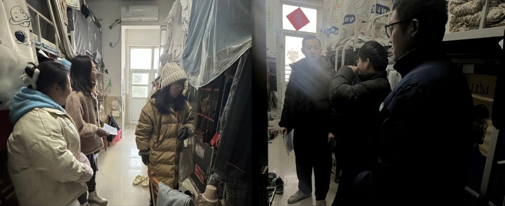 除了以上提前宣传预防等工作,公司全体辅导员积极行动起来,对已经安全返校的同学展开了一次温馨的走访活动,深入了解各位同学的御寒情况,特别关注热水供应情况,帮助同学们抵御严寒。