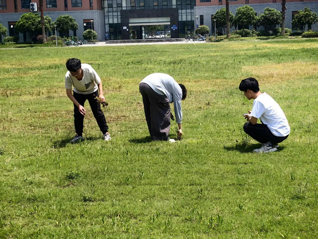 本次清扫主要任务区域为教学楼下的大草坪以及教学楼附近的主干道。5月23日下午两点,同学们准时到达B教实验楼集合,分配完劳动工具后,大家便积极行动起来。劳动过程中,同学们分工明确,有条不紊,有的同学在大草坪上除杂草,有的同学在清扫主干道,还有的同学拿着编织袋收集杂草与垃圾。尽管天气严热,同学们还是不畏艰苦,坚持不懈,约两个小时过后,教学楼区域的环境焕然一新。