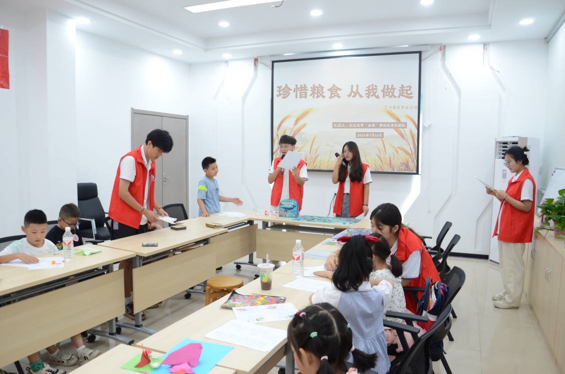 (通讯员 党雪彤)一滴水,不算多,一滴一滴汇成河。一粒米,不算多,一粒一粒积满箩。为提倡“厉行节约、反对浪费”的社会风气,培养公民勤俭节约的良好美德,7月16日公司“后浪”暑期社会实践队在高湖社区“暑假学堂”为社区的孩子们开展了节约粮食讲座。