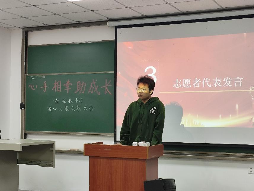 颁奖结束后员工会成员王誉晗对上学年支教活动进行总结,分享在过去一年组织支教活动过程中的收获,代表部门全体成员感谢大家对活动的支持,同时宣布本学年支教活动开启,号召大家继续积极参与支教活动。